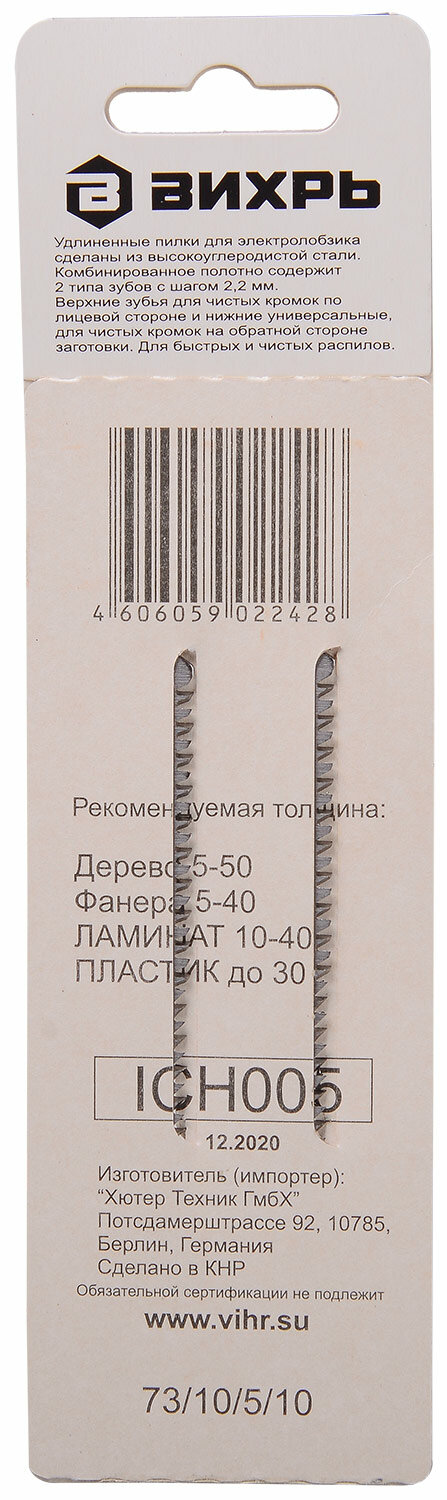 10 цен на Пилки Вихрь Т308В по дереву ламинату чистый рез 116 x 90мм (2 шт)