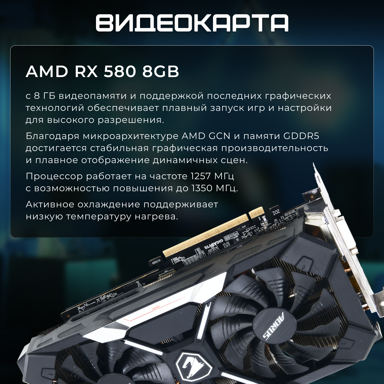 Системный блок игровой компьютер ПК (Amd Ryzen 5 3600, RX 580 8ГБ, ОЗУ 16ГБ, SSD 1024GB, A320 500W)