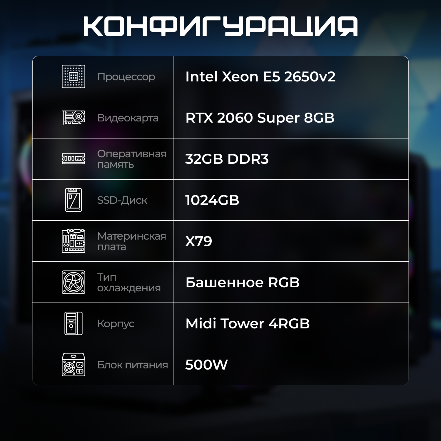 Игровой компьютер E5 2650v2 2060S DDR3 Reg 32GB SSD 1024GB информация: