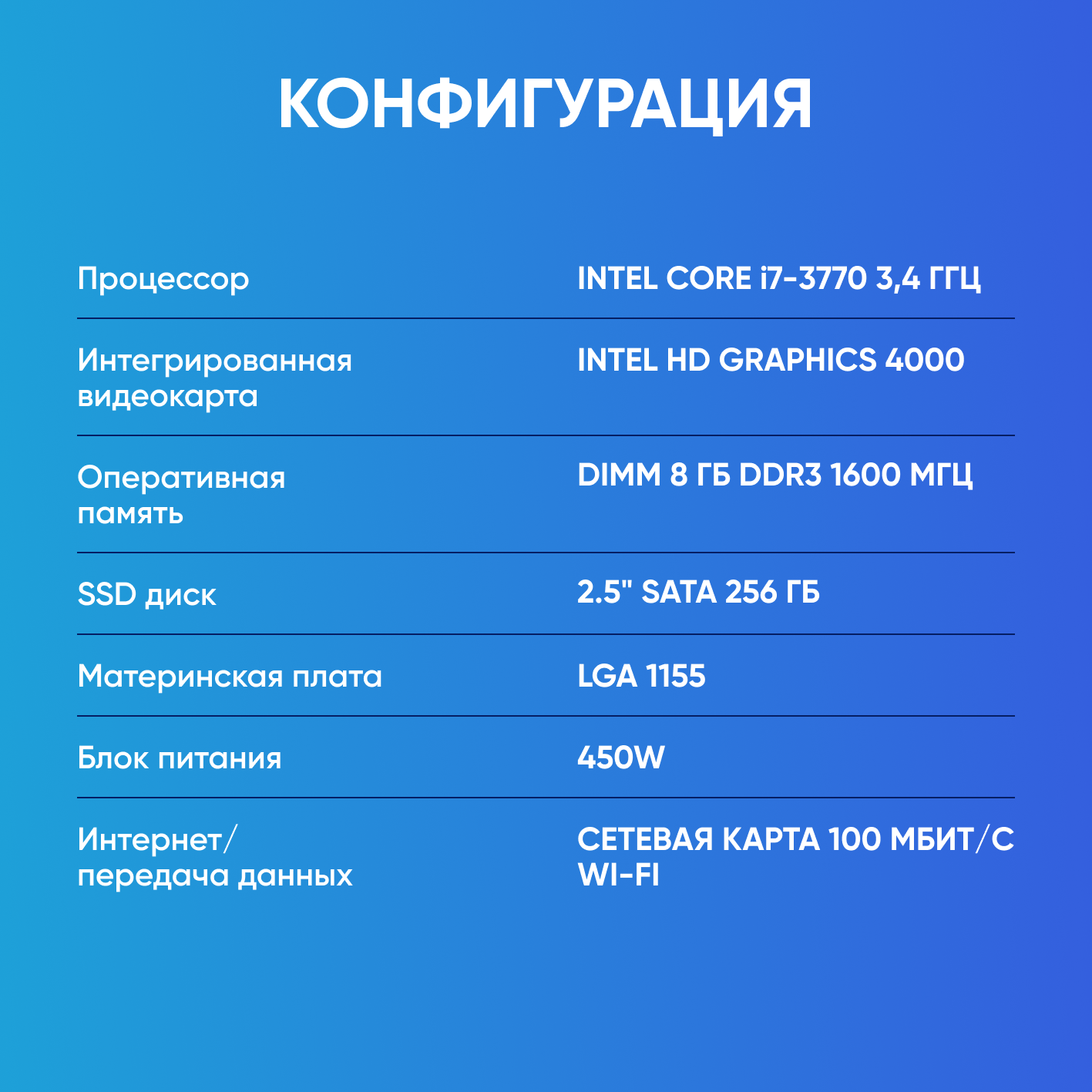 Системный блок AURORA ПК Office FL forza Компьютер офисный (Intel Core i7-3770 (3.4 ГГц), RAM 8 ГБ, SSD 256 ГБ, Intel HD Graphics 4000, Windows 10 Pro), чёрный матовый информация: