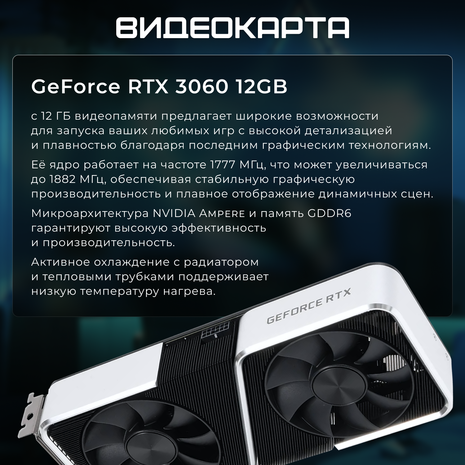 Системный блок Intel Core i5-12400F, RAM 32ГБ, SSD NVMe 512ГБ, NVIDIA GeForce RTX 3060 (12 Гб)