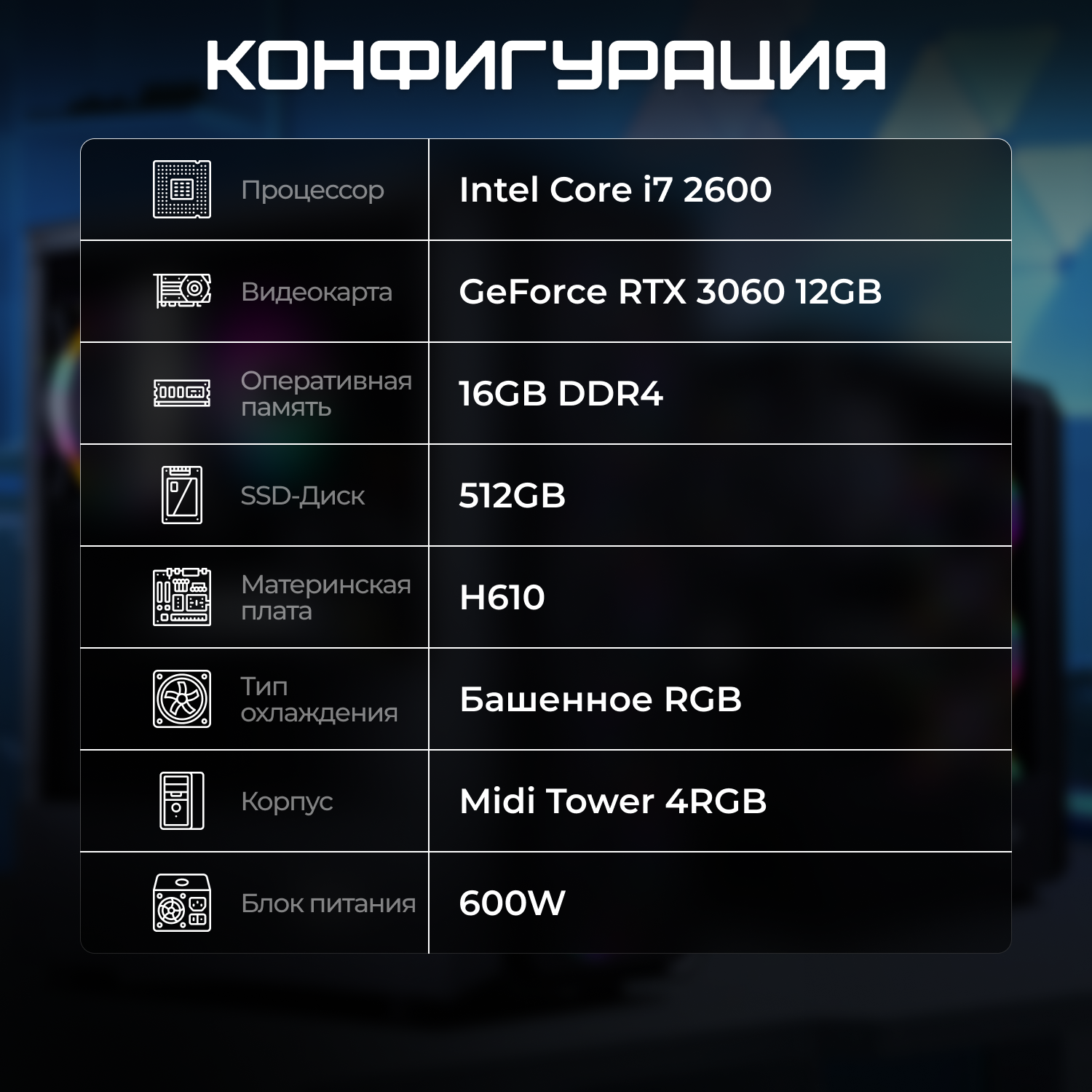 Игровой компьютер I5 12400F RTX 3060 12GB DDR4 16GB SSD 512GB информация: