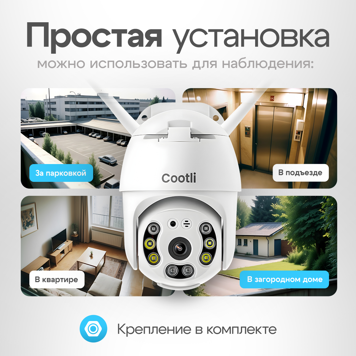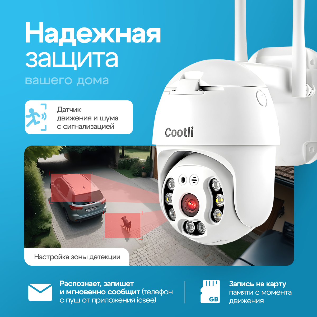 Отзывы на Уличная ip камера видеонаблюдения wifi 2 Мп (1920х1080) Сootli, видеокамера с ночной съемкой и датчиком движения с сигнализацией для дома