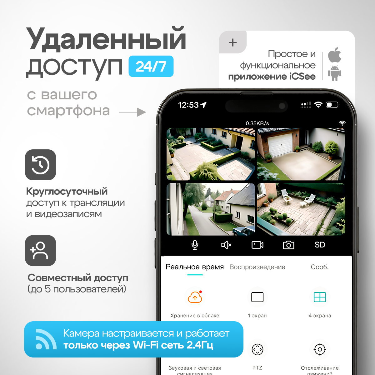 | Поддержка стандартов | DDNS / DHCP / ONVIF / Wi-Fi 2.4 ГГц |