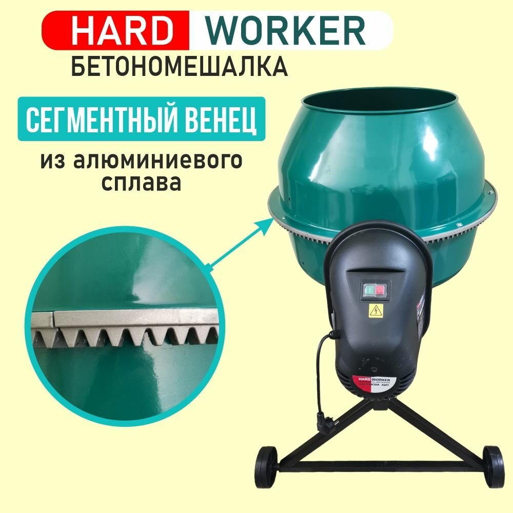 Бетоносмеситель HARD WORKER БС220СВА ХИТ сегментный венец из алюминиевого сплава, объем 200 литров, мощность 750 Вт, бетономешалка строительная информация: