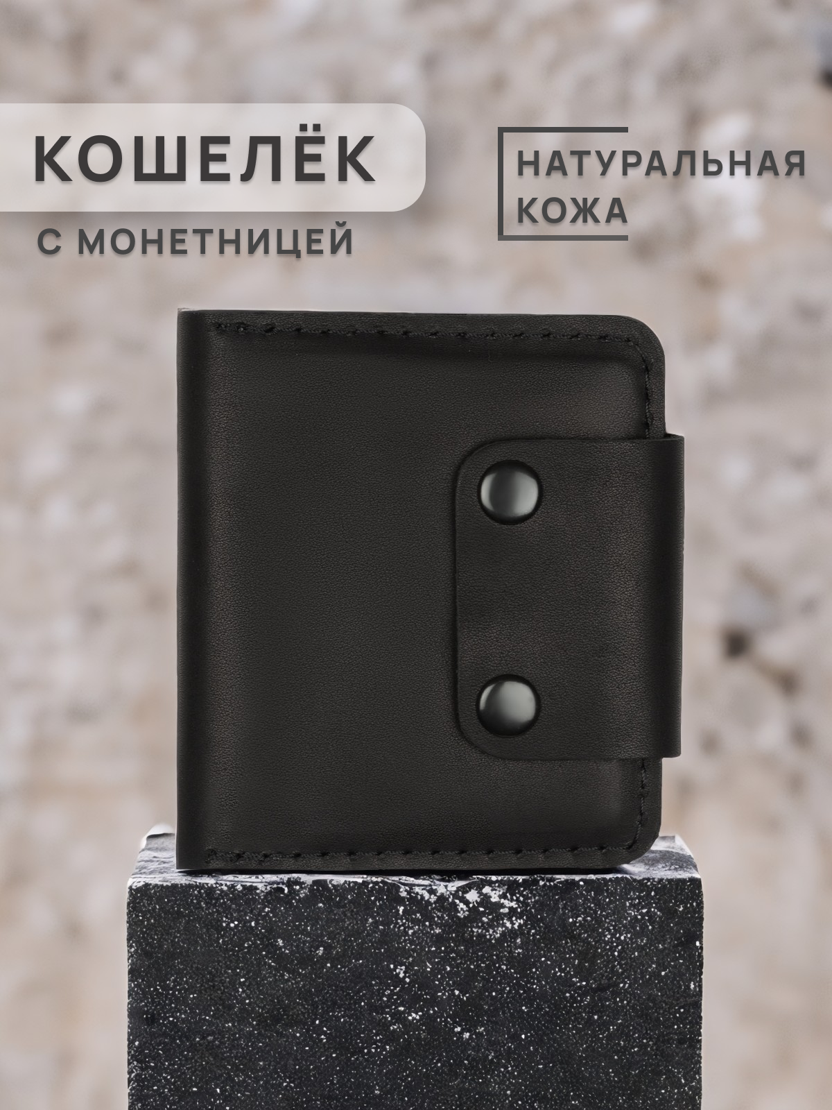 Отзывы на Кожаный кошелек для карт, картхолдер с монетницей на кнопках, черный