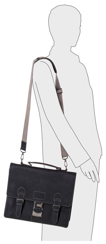 Портфель KLONDIKE 1896 Native, мужской, натуральная кожа, черный цвет, 38х14х33 см, 17,5 л (KD1132-01) информация: