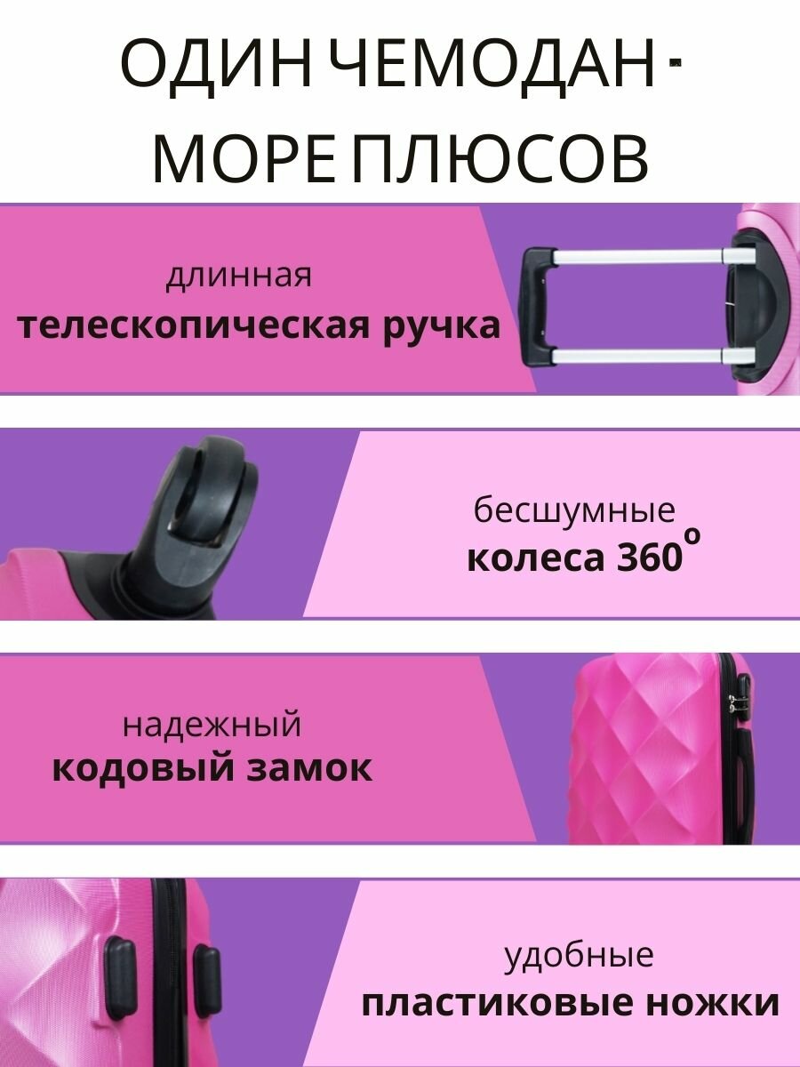 Дорожный чемодан на колесах маленький S, фуксия-малиновый информация: