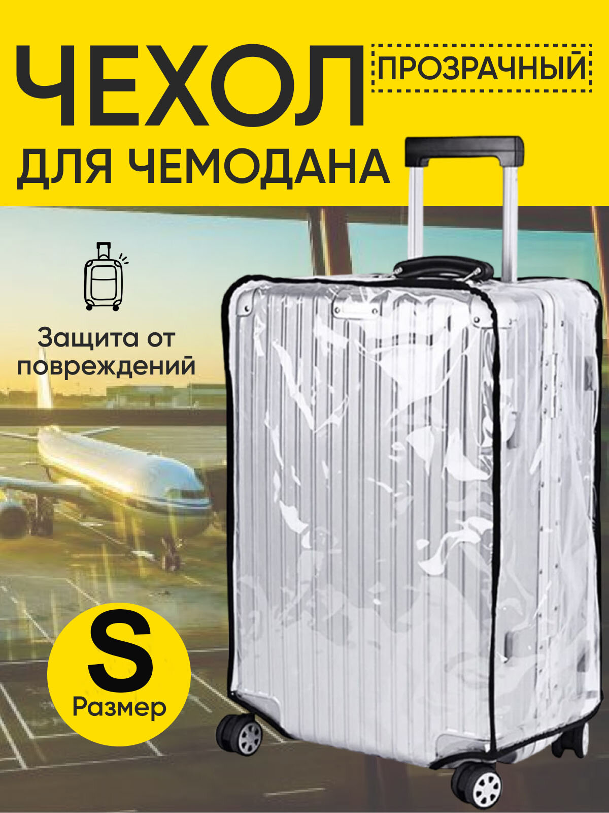 Чехол для чемодана S прозрачный на липучке. Защита багажа. информация: