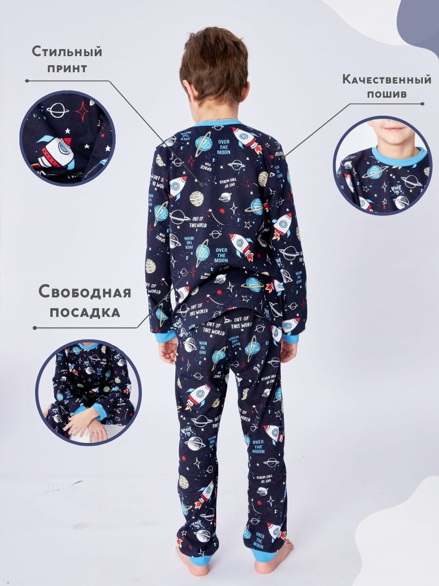 Пижама Веселый малыш, размер 140, синий, 93/17/Ракета 995 ₽