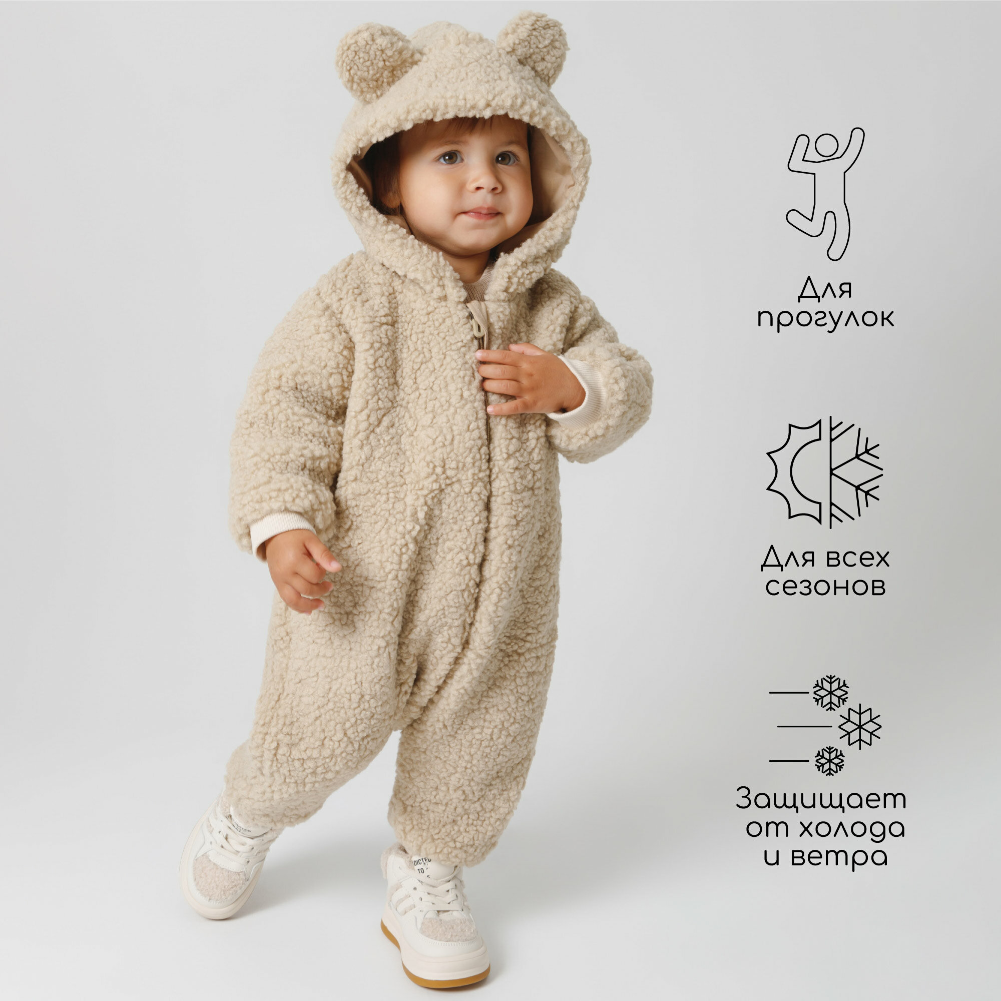 Комбинезон плюшевый с ушками мишки детский Amarobaby Plush, молочный, размер 86 3 066 ₽