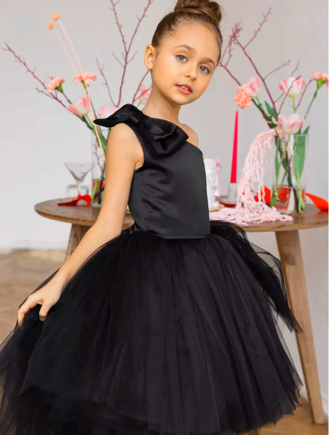Черное платье Канны 134 см нарядное с бантом и шлейфом информация: