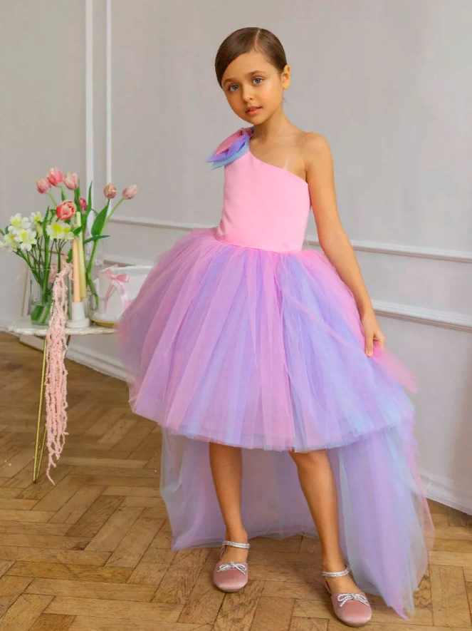 Отзывы на Розово-голубое платье Канны 158 см нарядное с бантом и шлейфом
