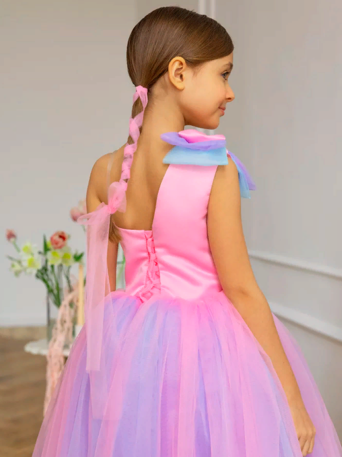 Розово-голубое платье Канны 158 см нарядное с бантом и шлейфом информация: