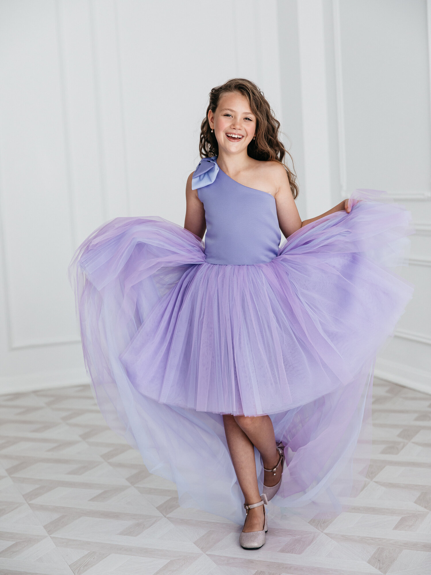 Фиолетовое платье Канны 140 см нарядное с бантом и шлейфом информация:
