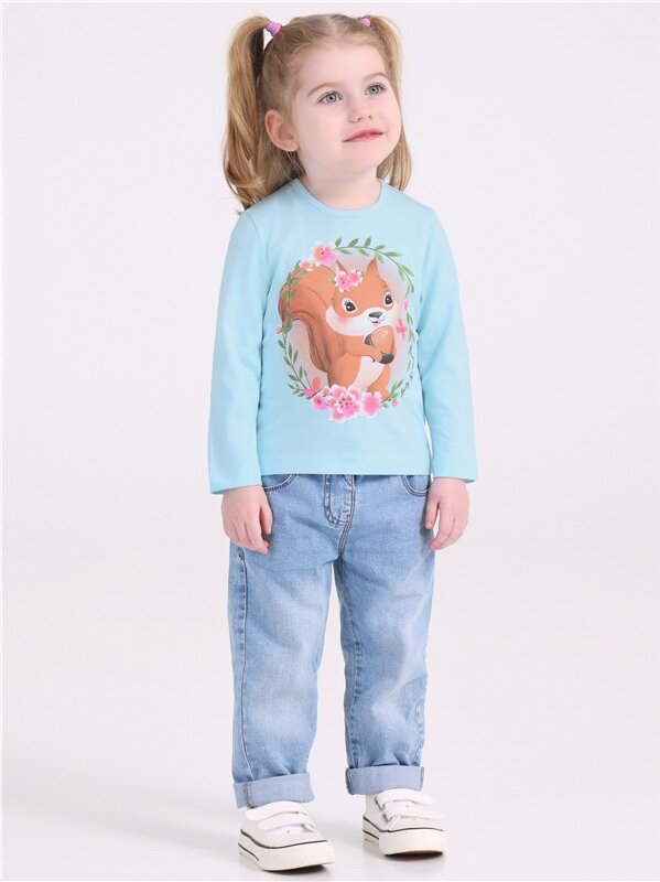 Лонгслив для девочки с принтом в садик хлопок 100% Апрель 1ДДЛД3568001/1425/1967/*/3345/*/*/*/1 голубой,коричневый,белый 54-104 501 ₽