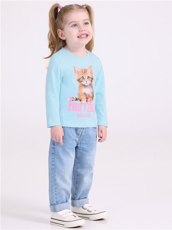 Лонгслив для девочки с принтом в садик хлопок 100% Апрель 1ДДЛД3568001/1425/1967/*/3440/*/*/* голубой,оранжевый,белый 54-104 504 ₽