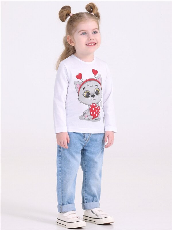 10 цен на Лонгслив для девочки с принтом в садик хлопок 100% Апрель 1ДДЛД3568001/1425/31/*/3367/*/*/* белый,красный,серый 54-104
