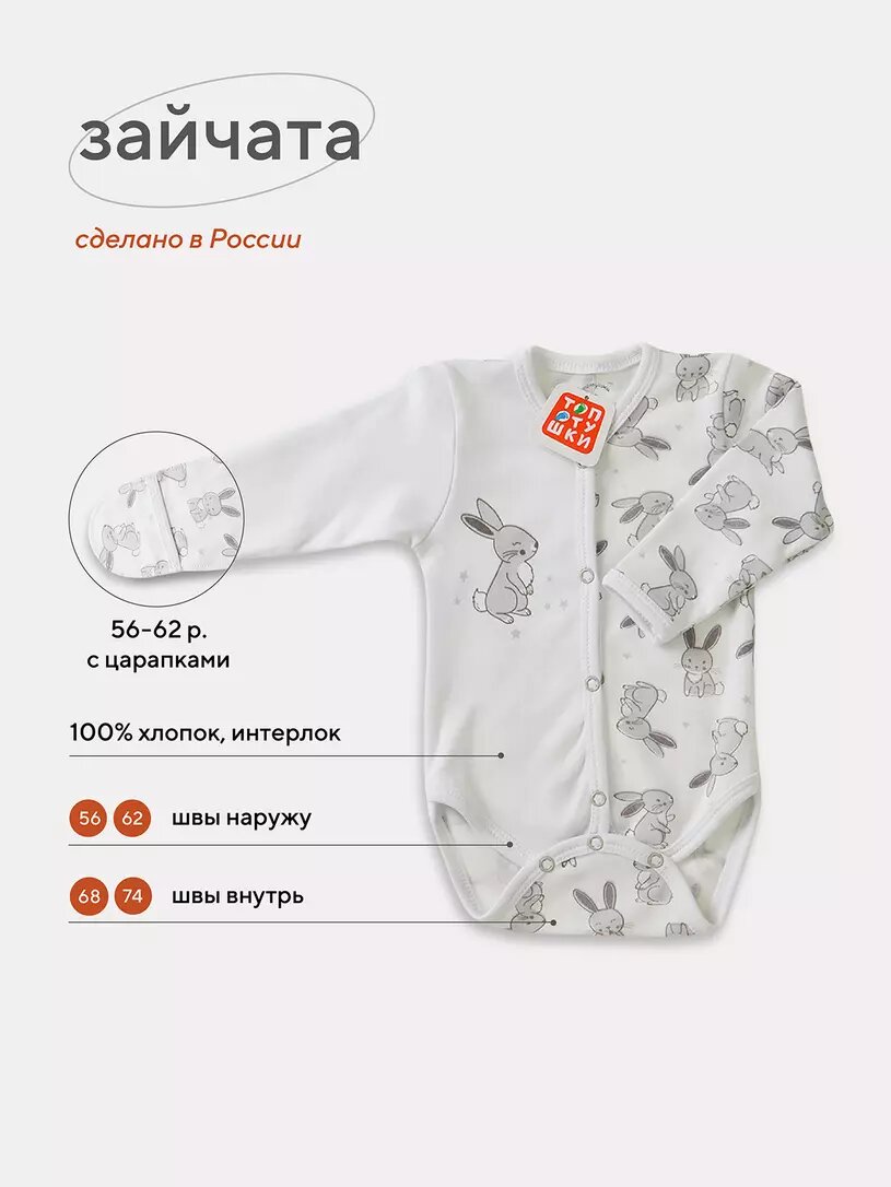 Отзывы на Боди с длинным рукавом Топотушки Зайчата с царапками 6748-56 серый с рисунками