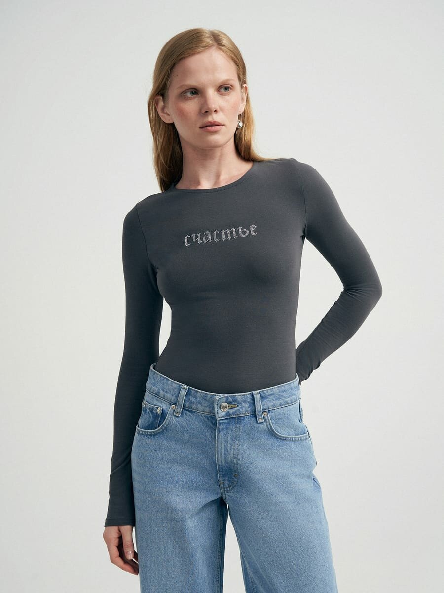 10 цен на Боди блузка с надписью стразами твое, арт. 101773,серый,S