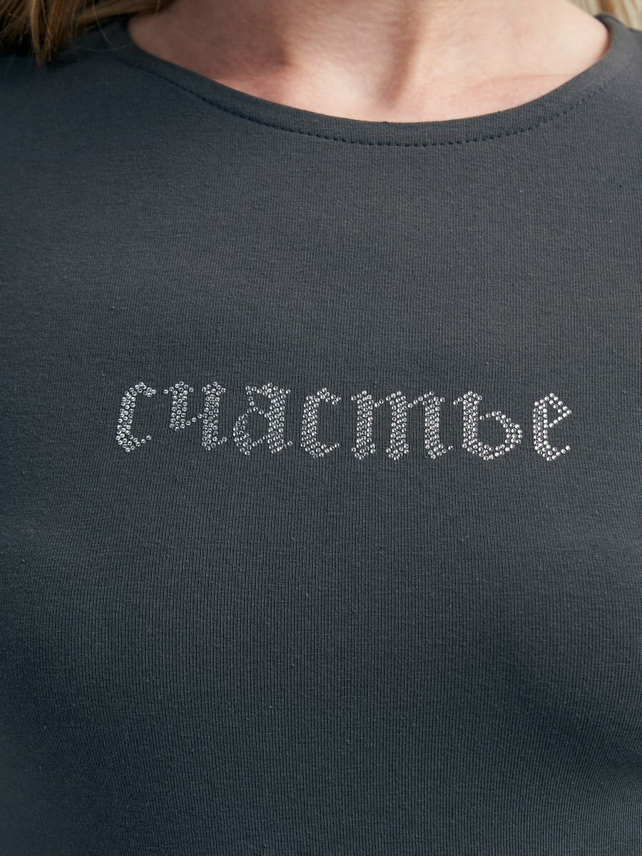 10 цен на Боди блузка с надписью стразами твое, арт. 101773,серый,XL