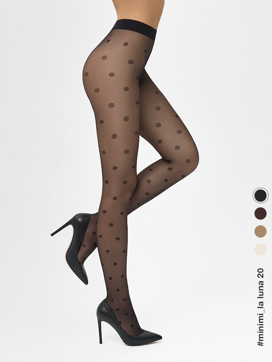 10 цен на Колготки женские MiNiMi LA LUNA 20 den, с рисунком средний горошек, размер 3, цвет Nero (черный)