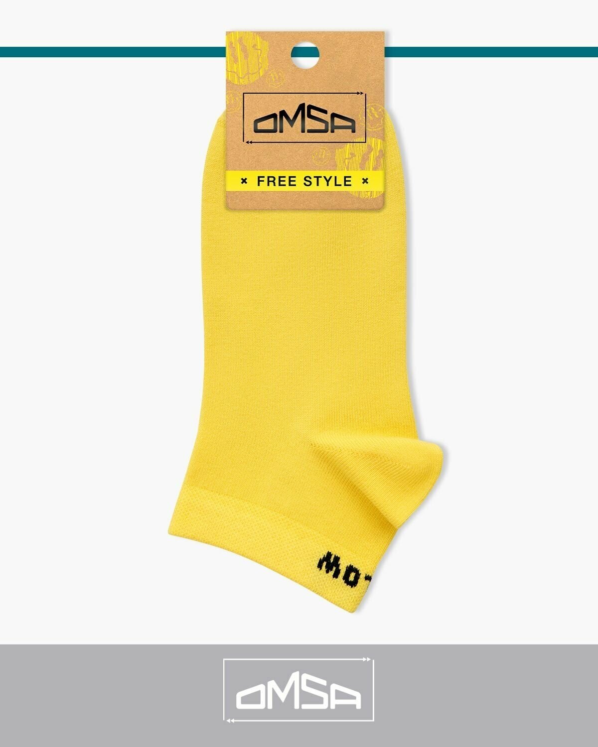 Носки OMSA Free STYLE 605, летние, с надписью, набор 3 пары, Цвет Giallo, Размер 35-38
