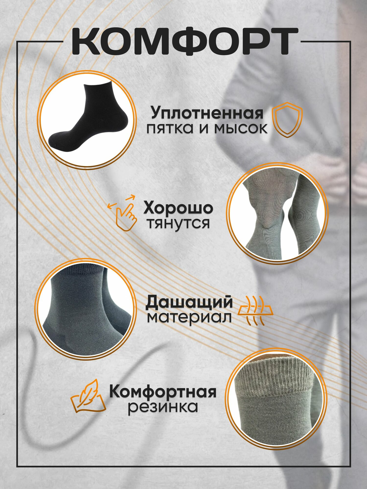 | Особенности | антибактериальная пропитка, воздухопроницаемые, износостойкие, на 23 февраля, на Новый год, подарочная упаковка, с ароматизатором, усиленная пятка |