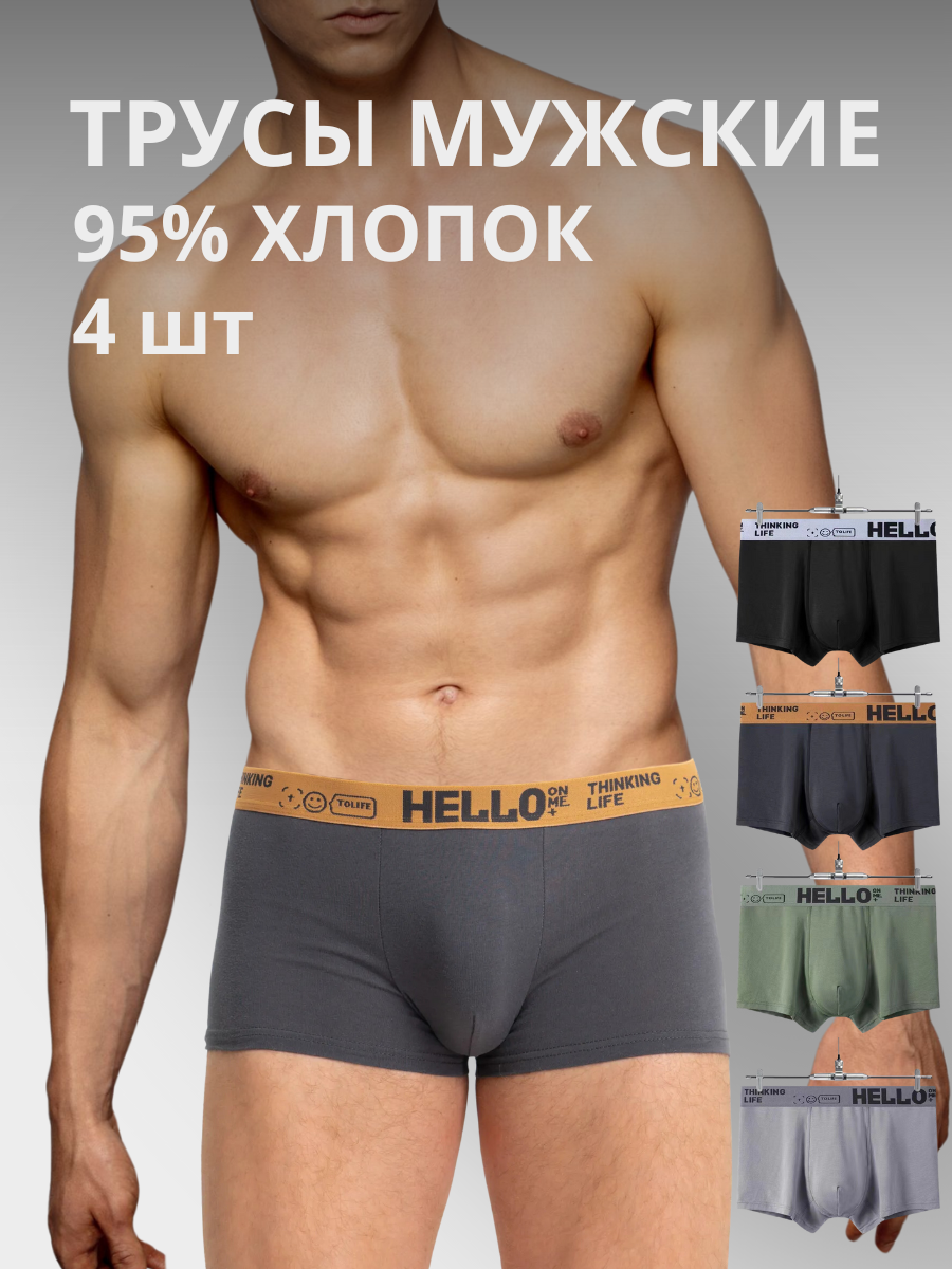 Отзывы на Трусы мужские, 4 шт размер 46-48, боксеры, цвета: черный, темно-серый, серый, зеленый