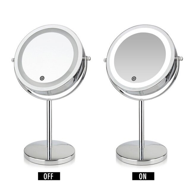 Зеркало настольное круглое железное двустороннее разного увеличения 16 см