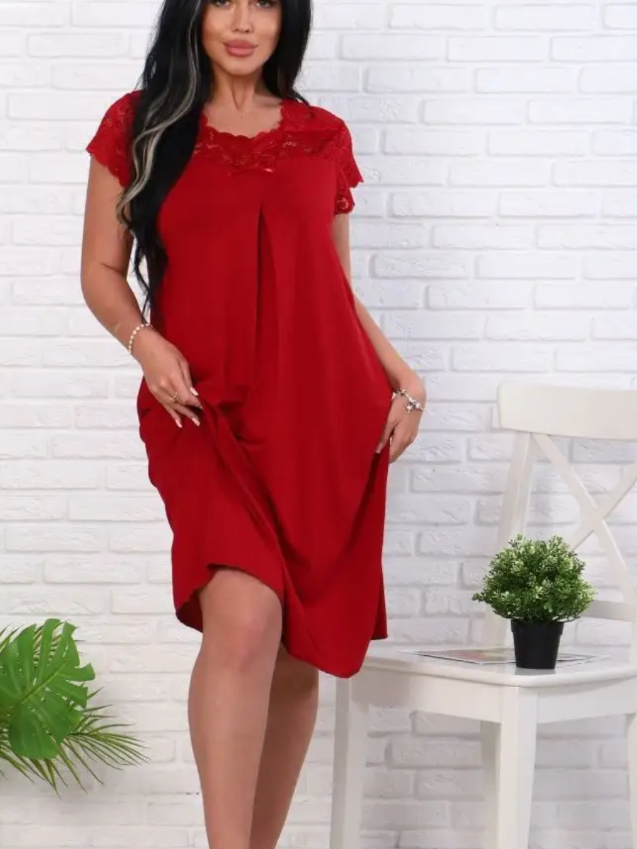 Домашняя ночная сорочка из вискозы с кружевом, размер 72 1 426 ₽