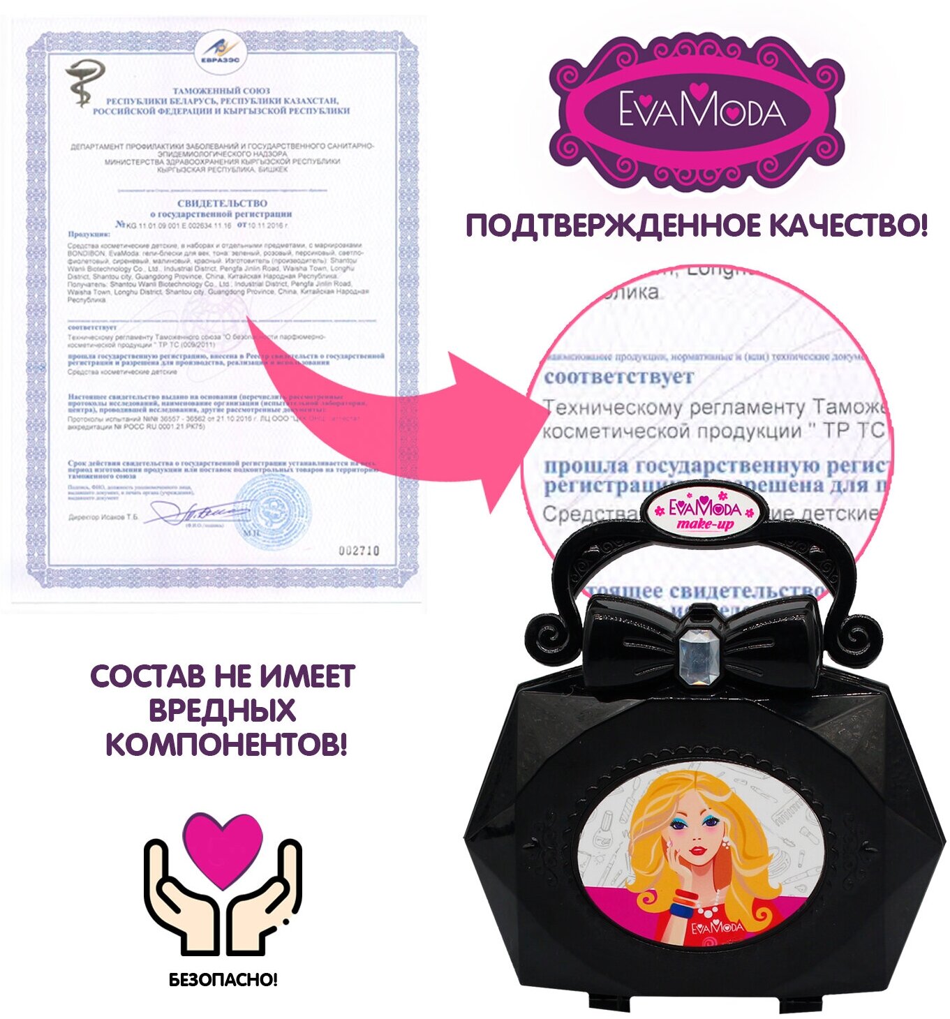 Отзывы на Набор детской декоративной косметики Bondibon Eva Moda косметичка-сумочка, раздвижная, чёрная