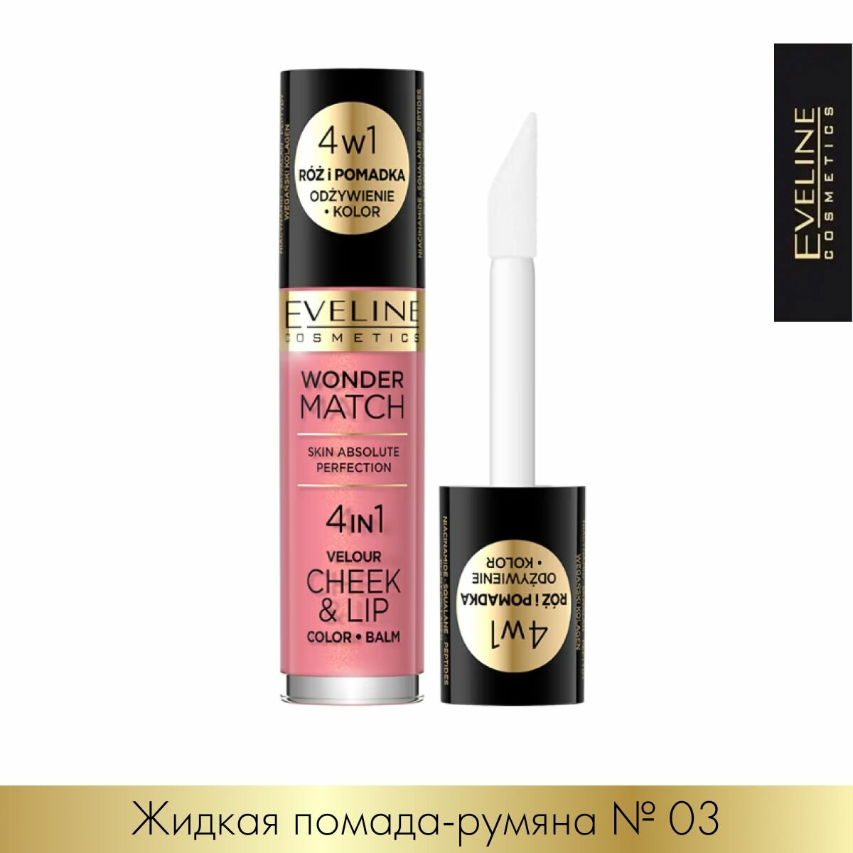 Помада-румяна Eveline "Wonder Match", жидкие, тон 03, 4,5 мл 499 ₽