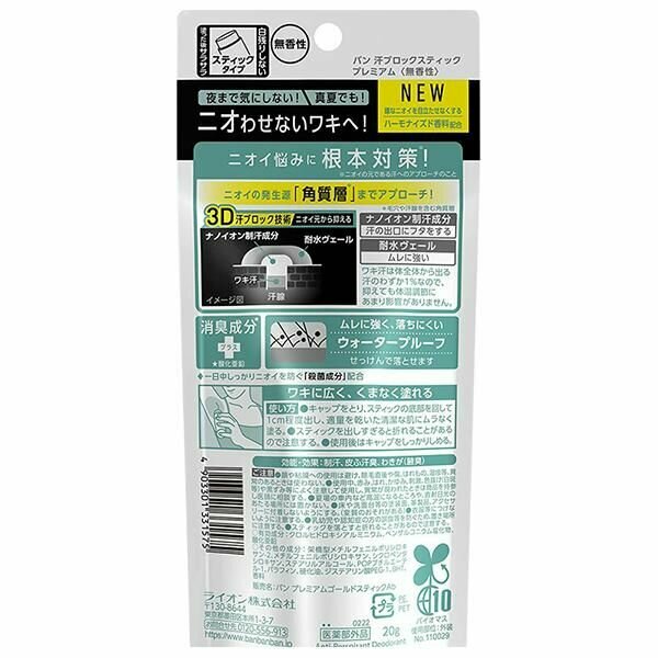 LION Премиальный твёрдый стик дезодорант-антиперспирант ионный блокирующий потоотделение BAN Premium Stick без запаха 20 г 1 369 ₽