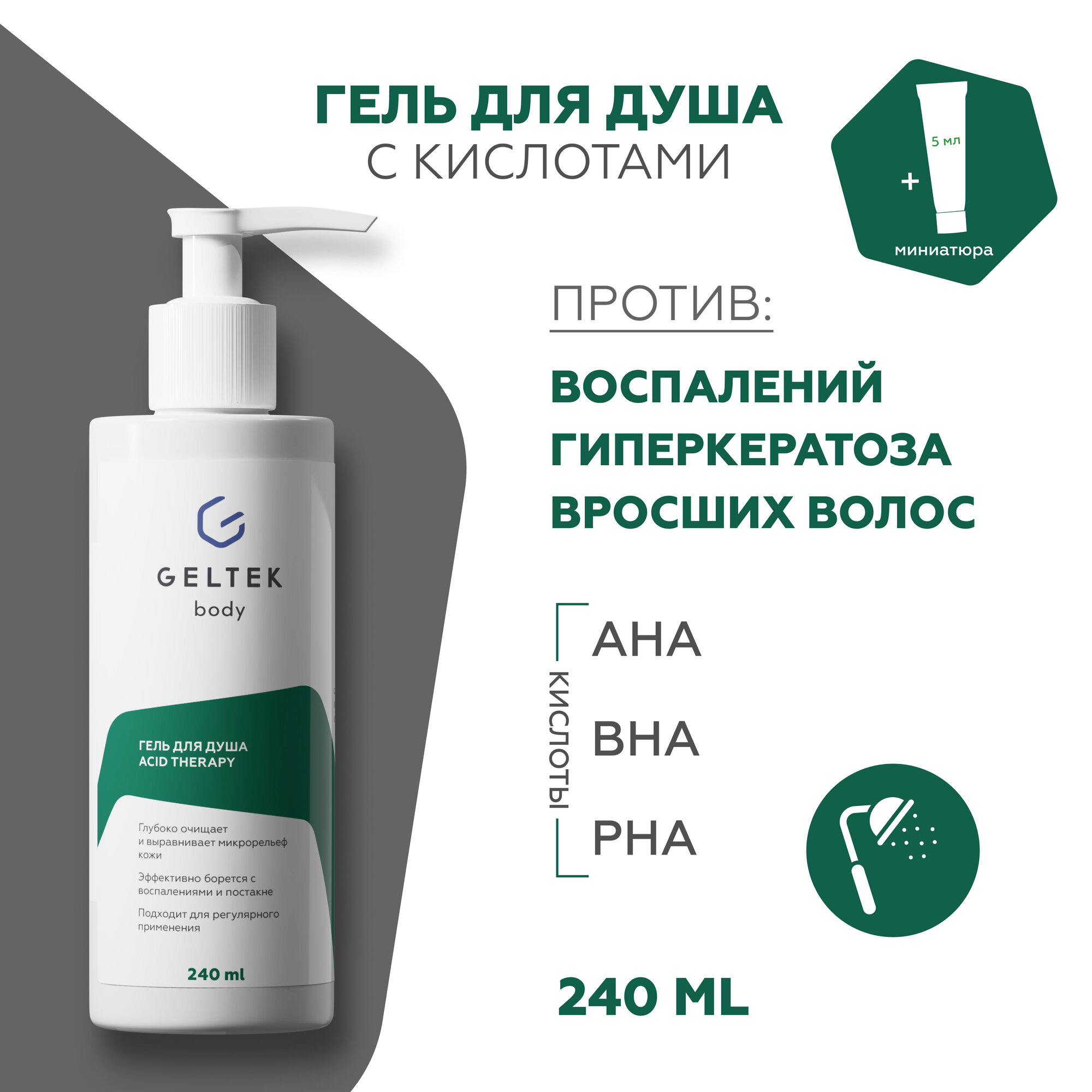 Гельтек Гель для душа Acid Therapy бессульфатный с кислотами, 240 мл+ миниатюра информация: