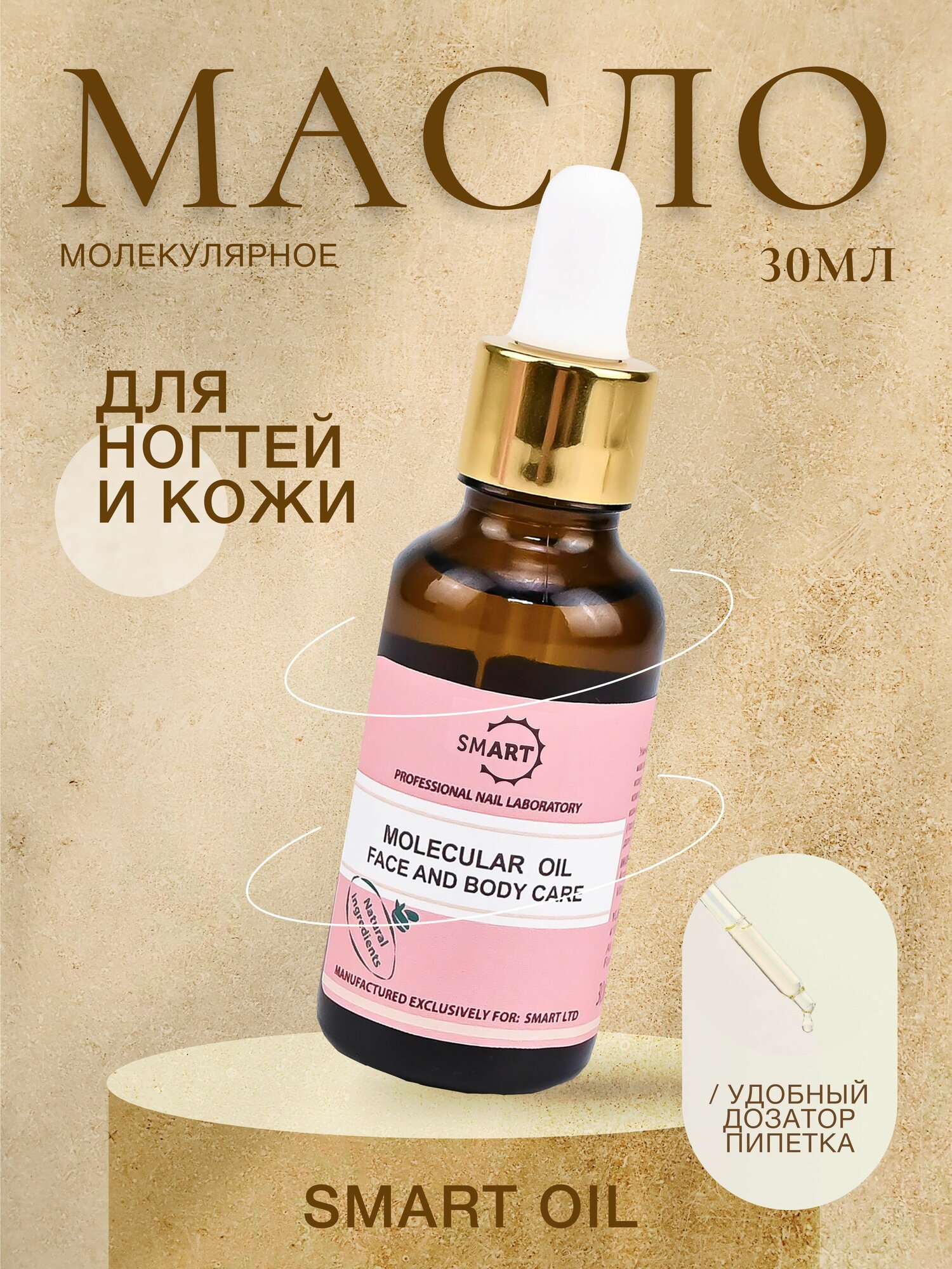 | Способ применения | Для ухода за кожей: Нанесите умное молекулярное масло на чистую кожу лёгкими движениями. Масло мгновенно впитывается, не оставляя жирной плёнки на коже. Подходит для ежедневного применения. |