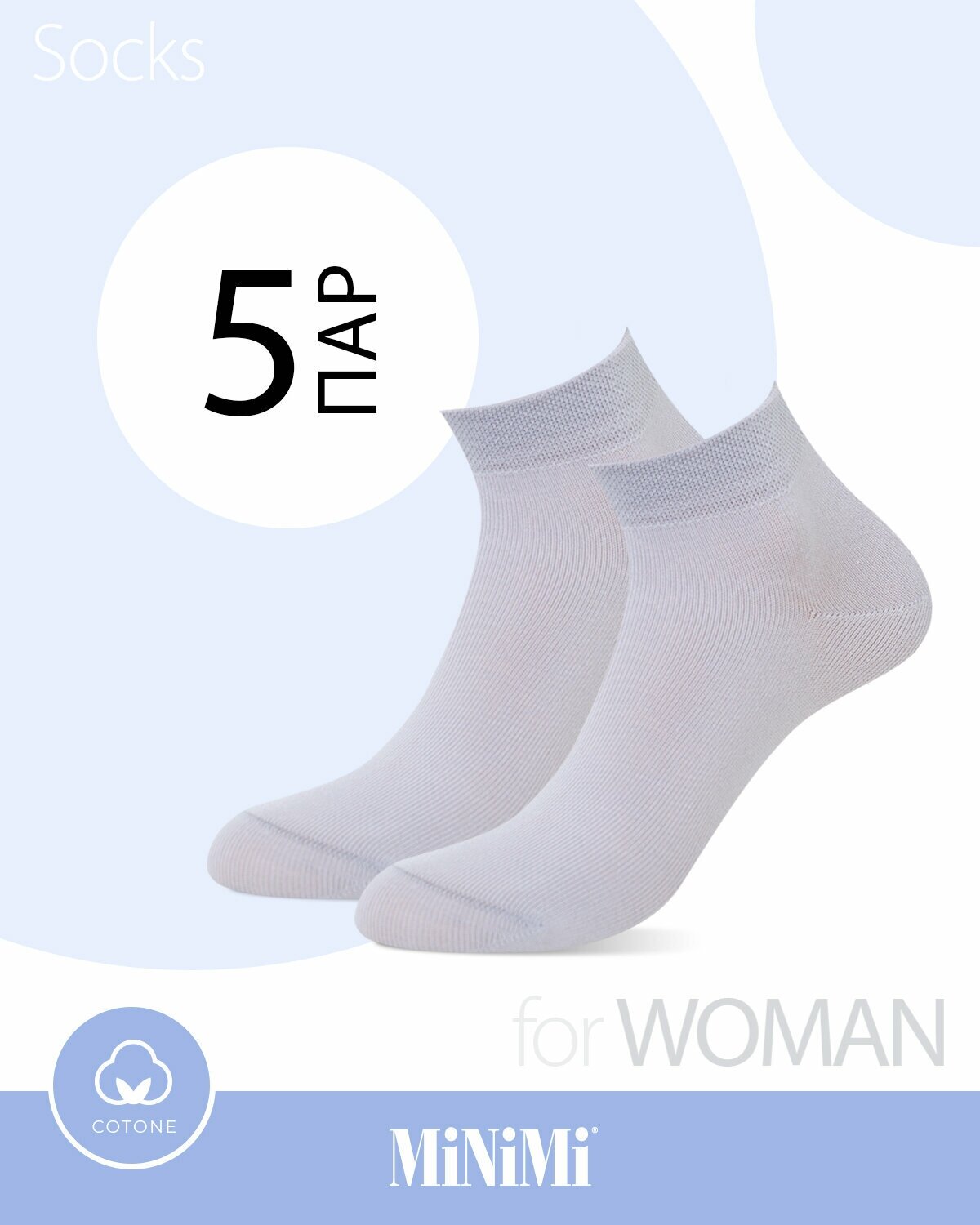 Носки женские MiNiMi Cotone 1201, летние, набор 5 пар, Цвет Светло-голубой, Размер 35-38