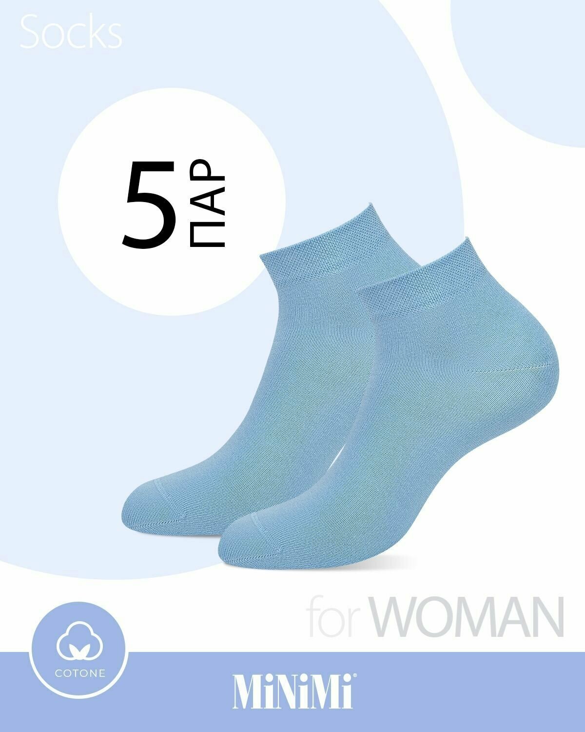 Носки женские MiNiMi Cotone 1201, летние, набор 5 пар, Цвет Светло-голубой, Размер 35-38