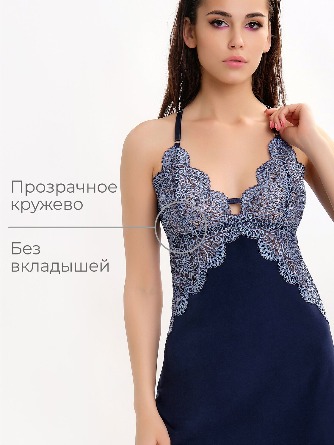 Ночная сорочка кружевная хлопокMon Plaisir, арт.182433469, синий, размер 42 информация: