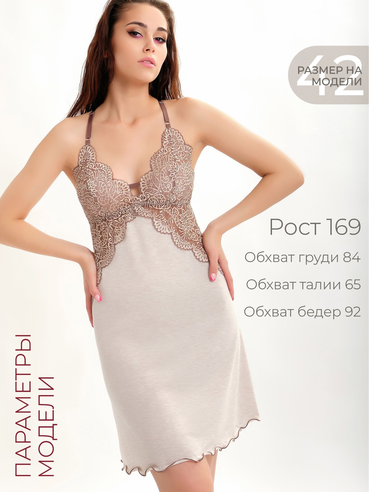 10 цен на Ночная сорочка кружевная хлопок Mon Plaisir, арт.210526322, бежевый миндаль, размер 42