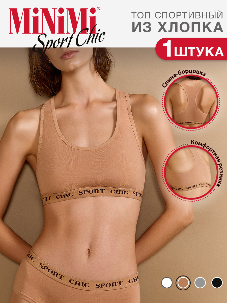 Отзывы на Топ женский MiNiMi M2S142, спортивный на широких бретелях, хлопковый, размер 44 (S), цвет бежевый