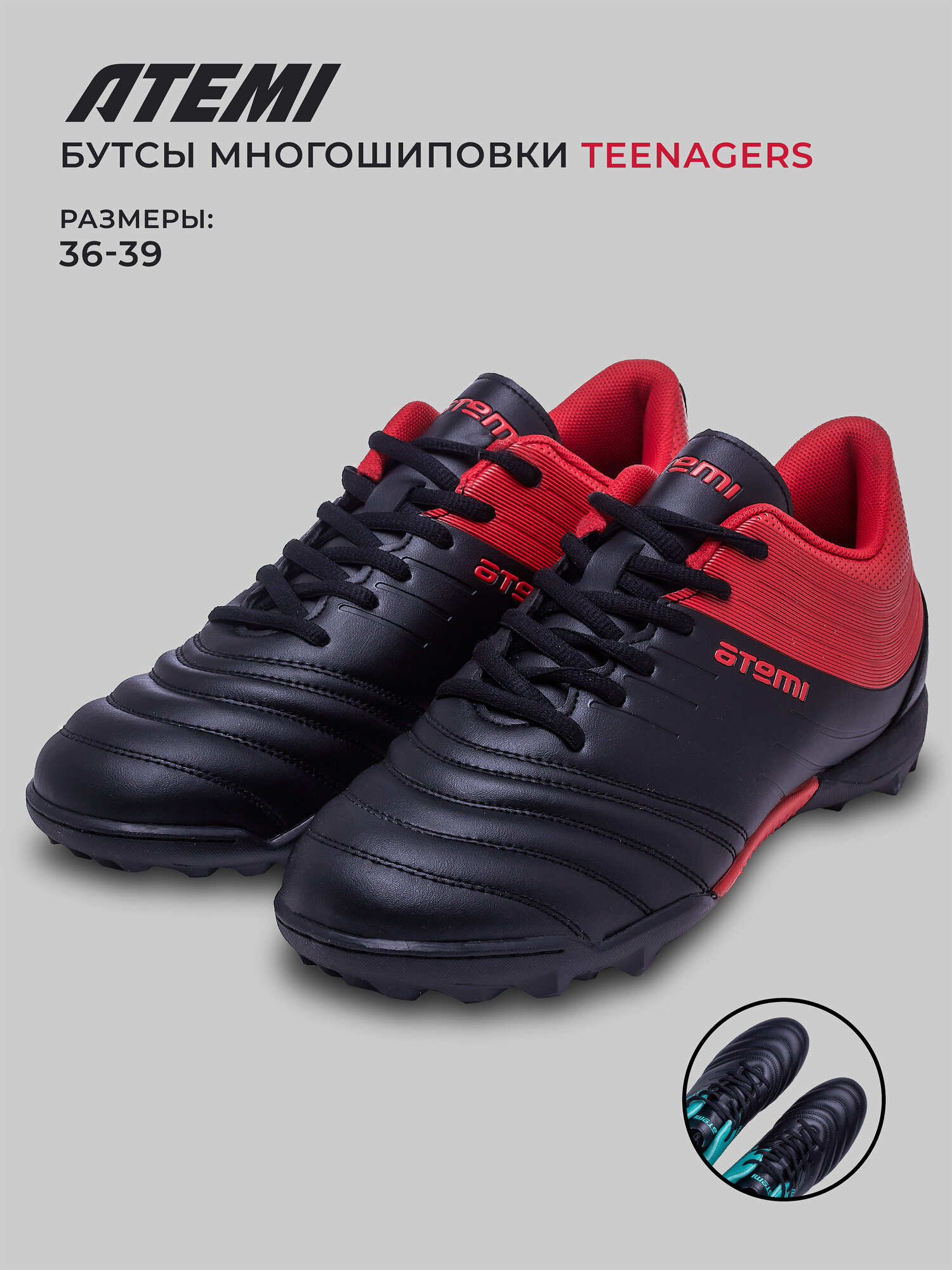 Бутсы футбольные ATEMI, SBA-002 TURF JUNIOR, цв. черный/ красный (37) информация: