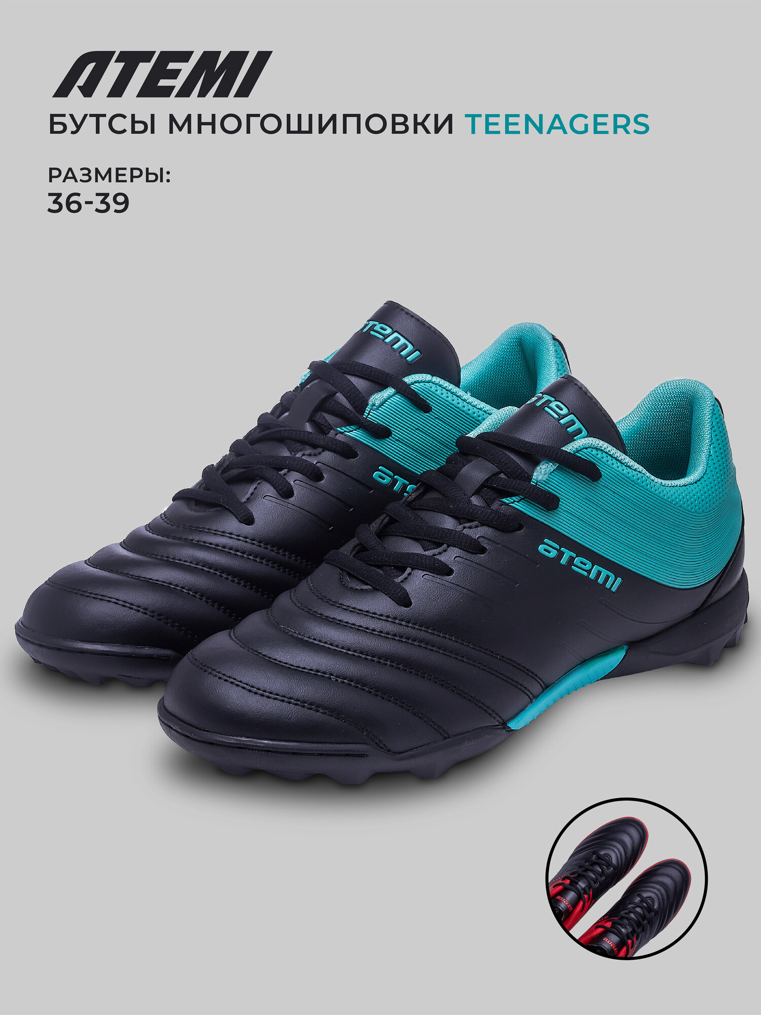 10 цен на Бутсы футбольные ATEMI, SBA-002 TURF JUNIOR, цв. черный/ бирюзовый (36)