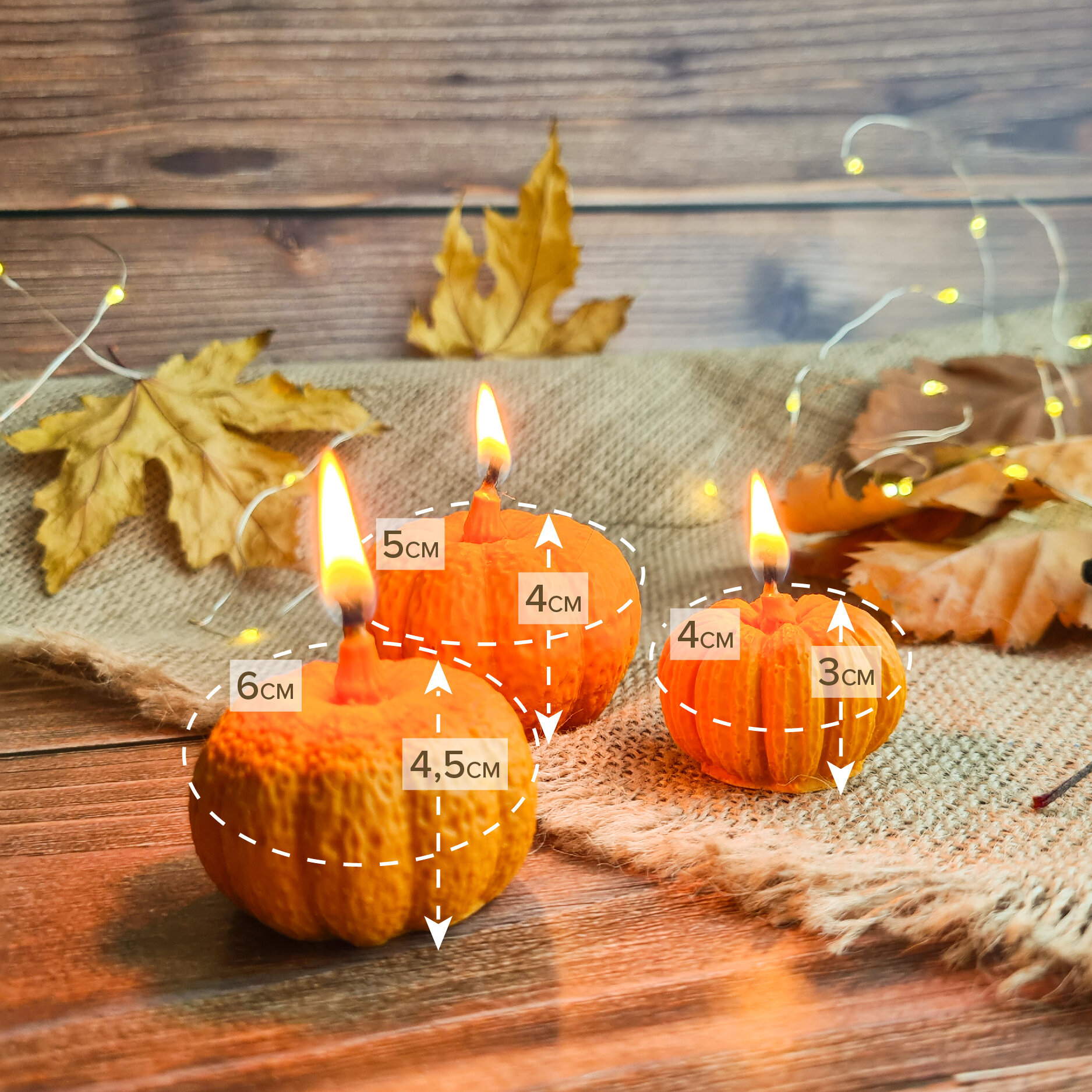 Набор свечей "Осенние Тыквы" оранжевый, 3 свечи + Подарок информация: