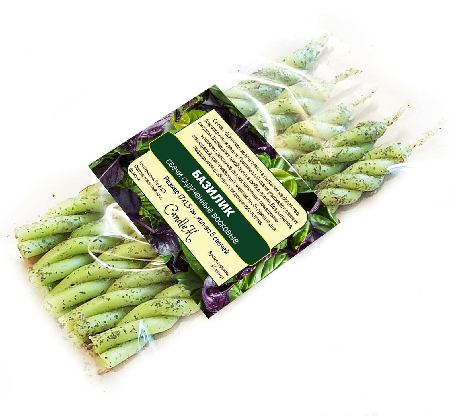 Свечи восковые скрученные с базиликом / благополучие / 5 штук информация: