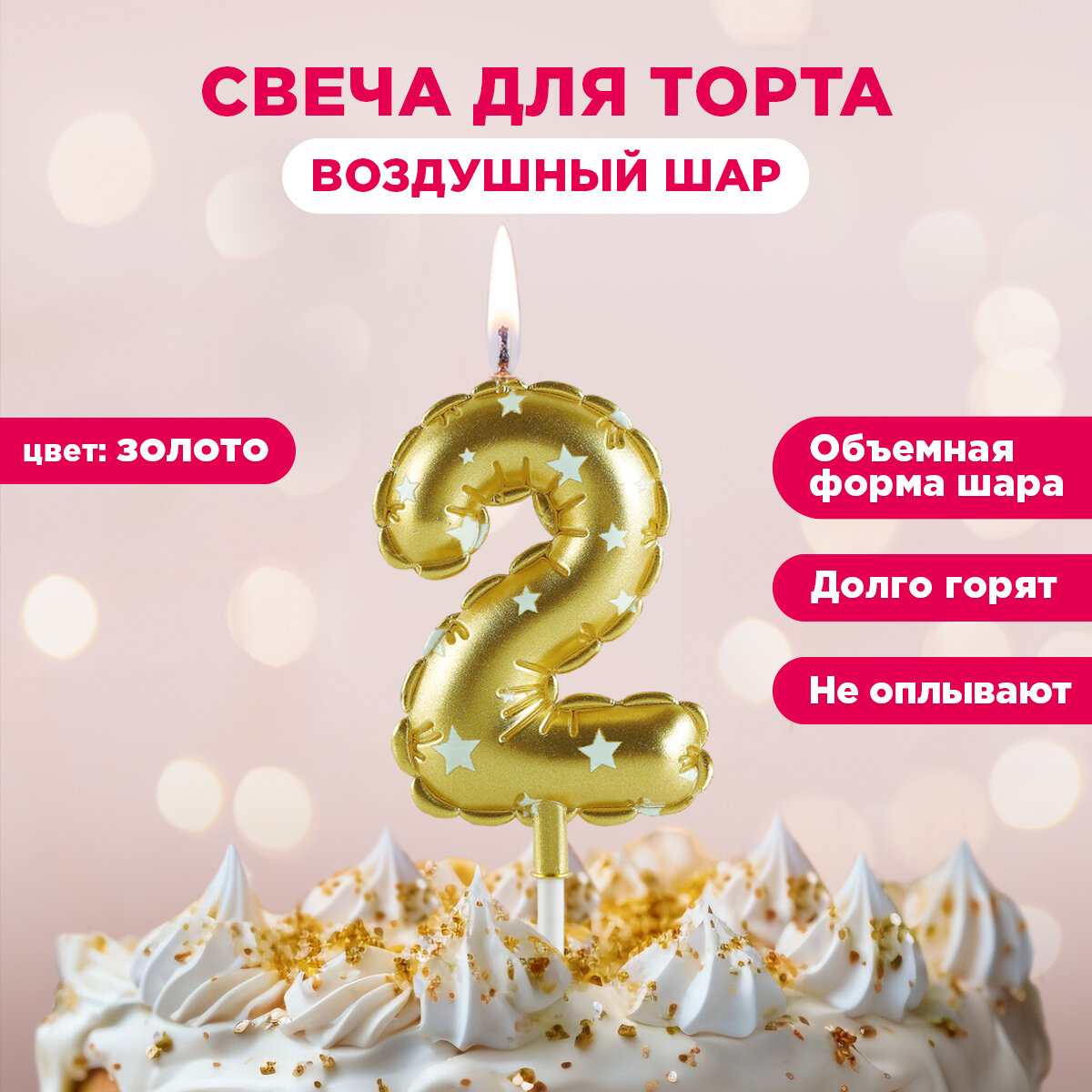 Отзывы на Свечи для торта цифры Воздушные шары PATERRA, цифра 2, золотые (491-022)