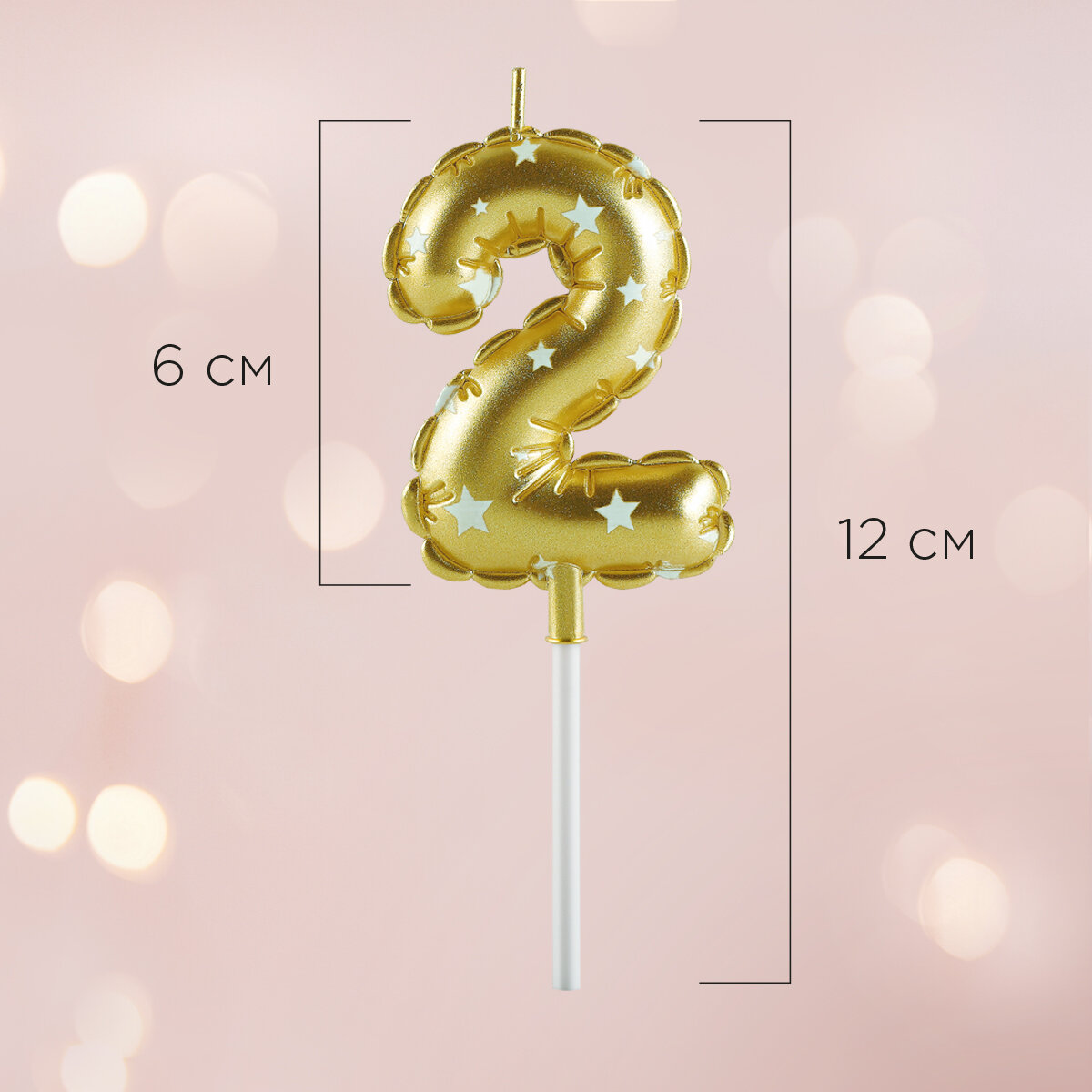 Свечи для торта цифры Воздушные шары PATERRA, цифра 2, золотые (491-022) информация:
