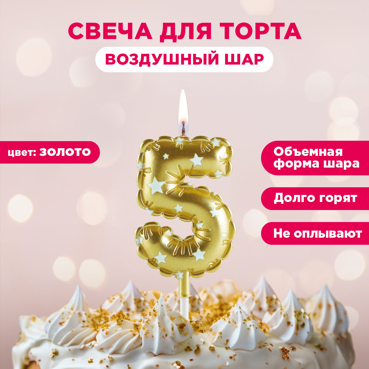 10 цен на Свечи для торта цифры Воздушные шары PATERRA, цифра 5, золотые (491-025)