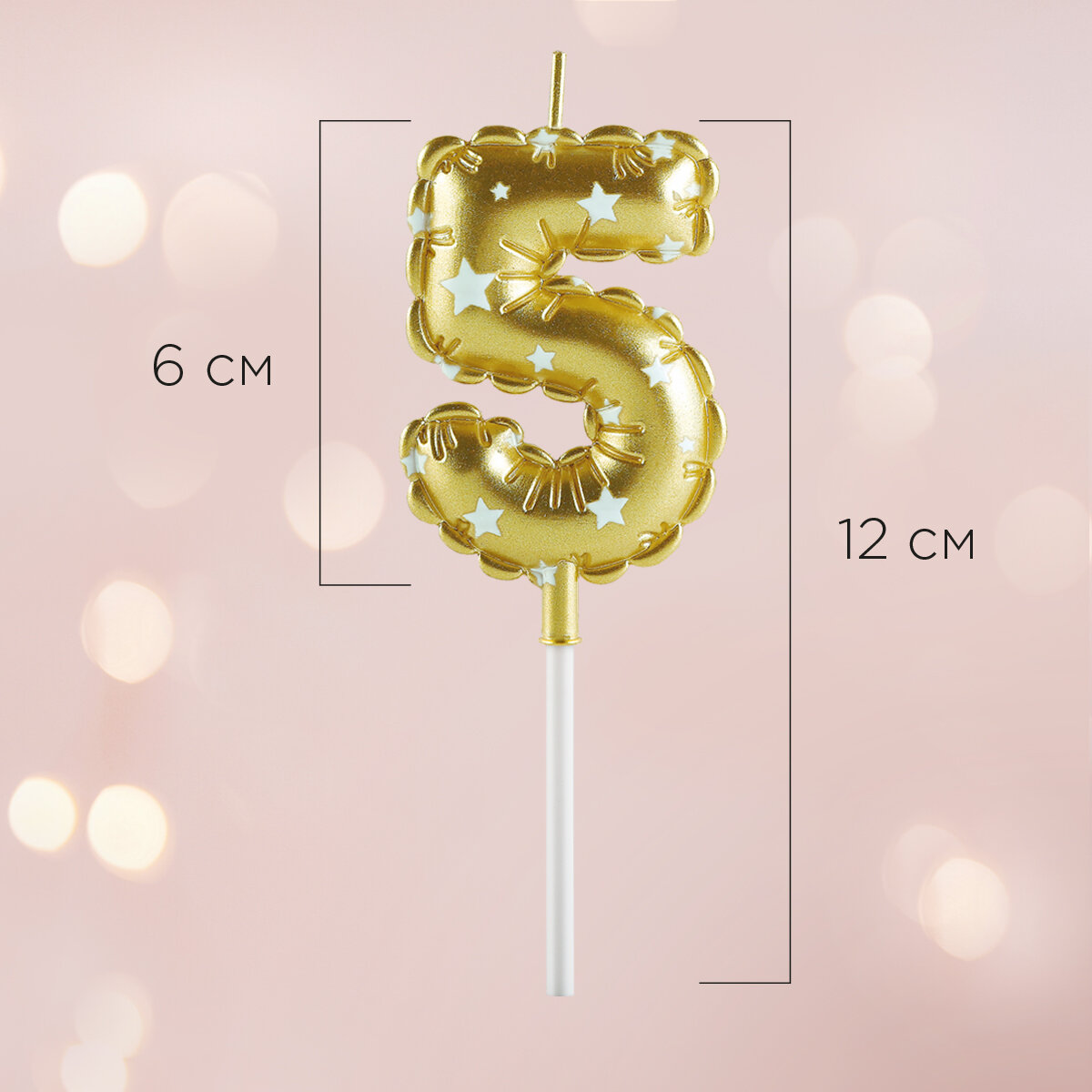 Свечи для торта цифры Воздушные шары PATERRA, цифра 5, золотые (491-025) информация: