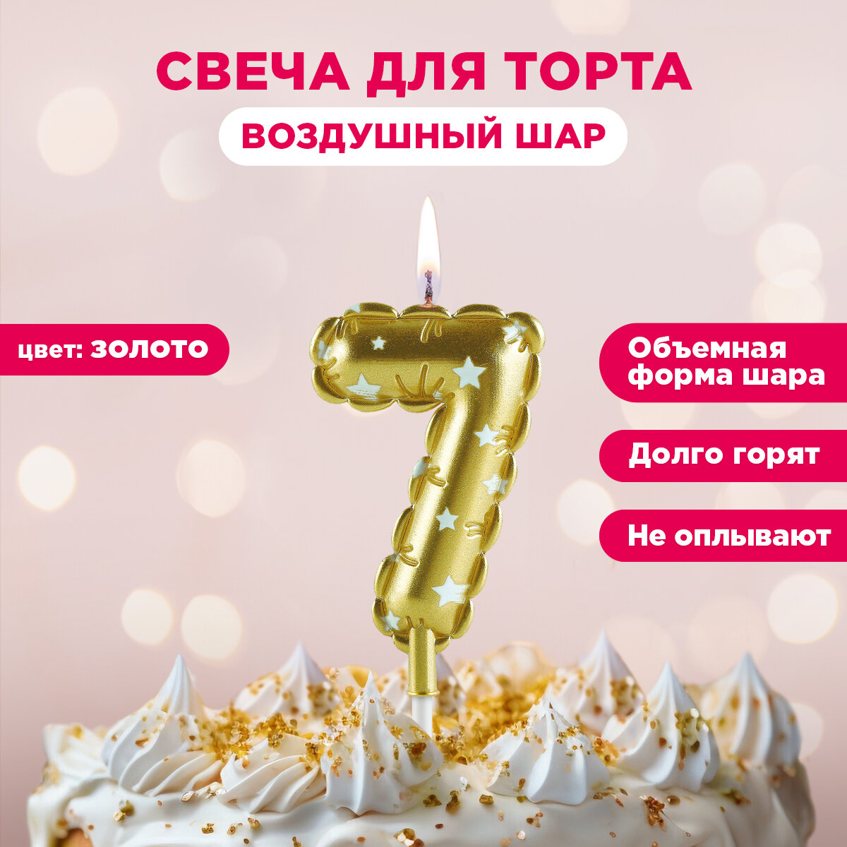Отзывы на Свечи для торта цифры Воздушные шары PATERRA, цифра 7, золотые (491-027)